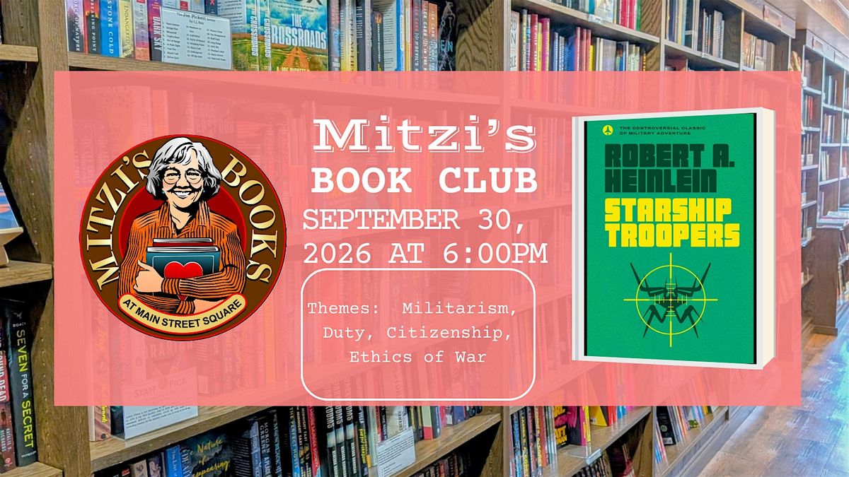 Join us at Mitzi's Books on September 30, 2026 at 6:00 PM (MDT) for as we dive into the classic sci-fi novel Starship Troopers. Whether you're a longtime fan or just curious, come share your thoughts and enjoy great company. Snacks and good vibes guaranteed!