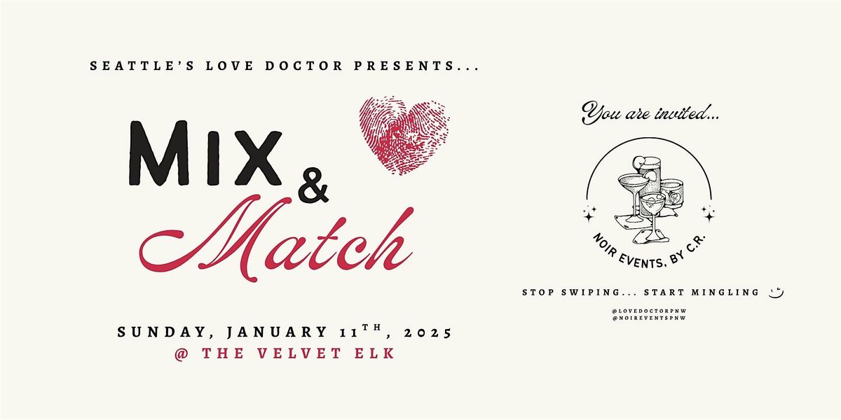 đź’Ś Join us for a dating-themed cocktail party, where everyone arrives single and everyone gets a match... no swiping necessary! Hosted by the Love Doctor and Noir Events, your home for Seattle's most charming, intimate, and thoughtful events.
