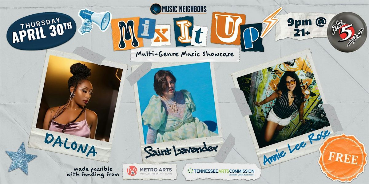 We created our Mix It Up Artist Showcase to provide Nashville with the opportunity to explore several different styles of music in one night of curated music. Our goal is to bring different cultures and music communities together to build a stronger, more inclusive, and more vibrant Nashville for all people.