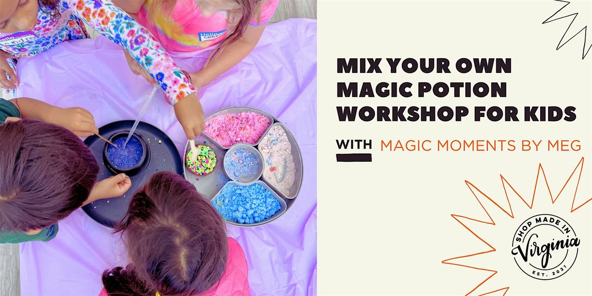 Each child will also get to create their own take-home potion, layering colors and glitter to create a one-of-a-kind elixir. This workshop is equal parts creative play, science experiment, and unforgettable fun.