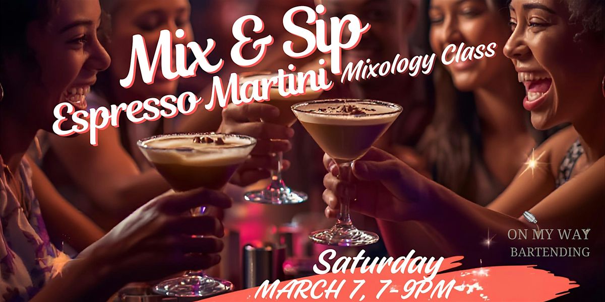 Join us for a Mix&Sip Espresso Martini Mixology Class! We're getting your ready for fall with this one! This is for the espresso martini lovers, but we are going to be mixing up delicious variations of the classic! Guests will get to make 3 craft cocktails under the guidance of our certified mixologist! The first 2 rounds will be led by our certified mixologist, and you'll be making 2 espresso martini cocktail recipe variations (the Salted Caramel Espresso Martini w/vodka and the Es-press Ya Self w/tequila). Guests are provided with all ingredients, tools, and glassware to craft their cocktails. Cocktails will be unique recipes created On My Way Bartending, and will be fun vibrant flavors for you and your friends to enjoy! Just show up, mix up, sip up.