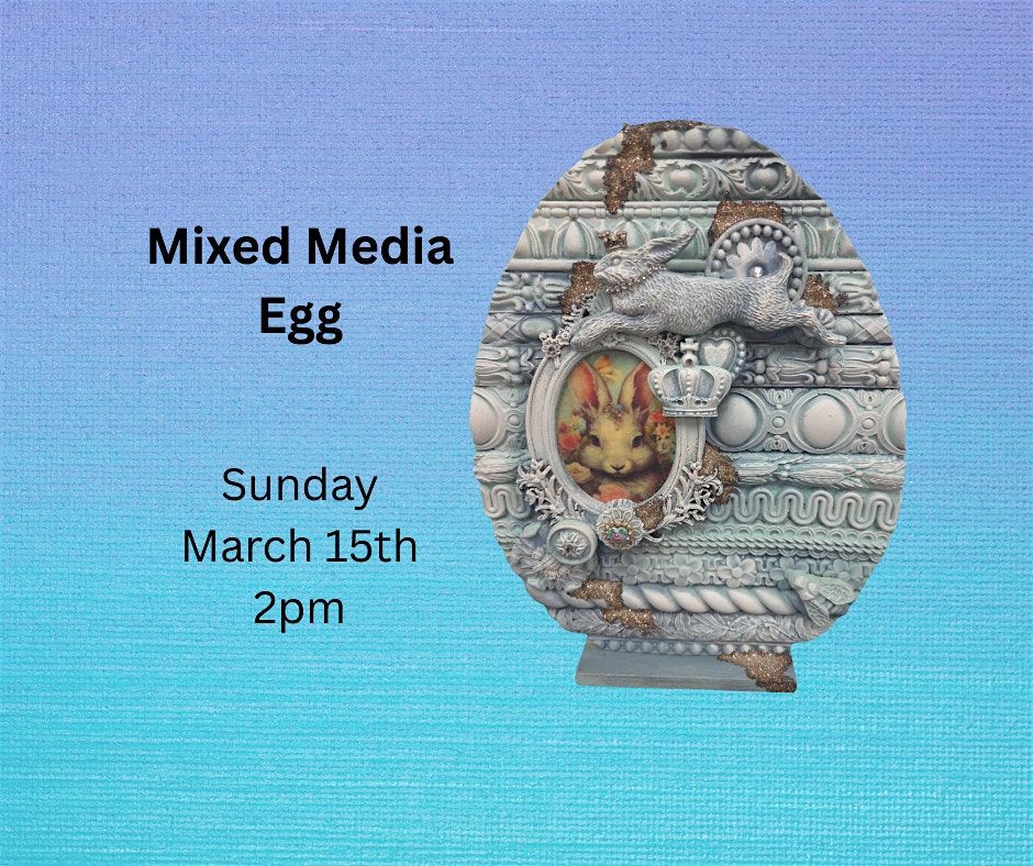 Create this beautiful egg using a wood base, resin pieces, paints, glitter, and decoupage, all the fun things!