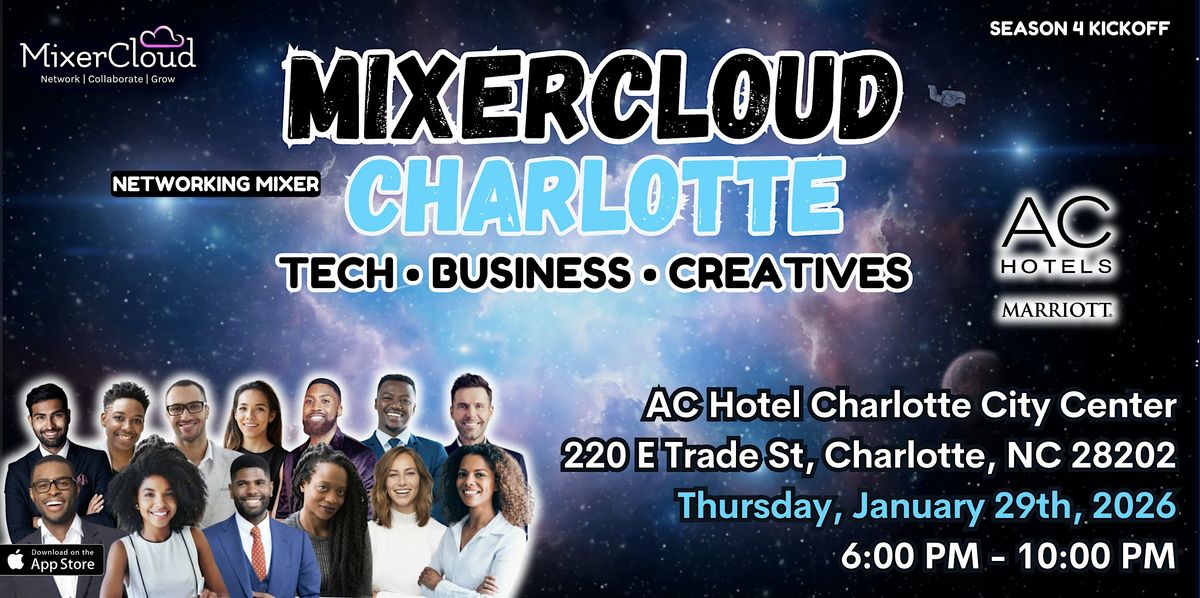 Charlotte, we’re starting 2026 with momentum. MixerCloud is bringing a high-energy networking mixer to the lounge at AC Hotel Charlotte City Center for real conversations, fast intros, and warm collisions across Charlotte’s tech, business, and creative communities, plus the broader professional ecosystem that powers the city.