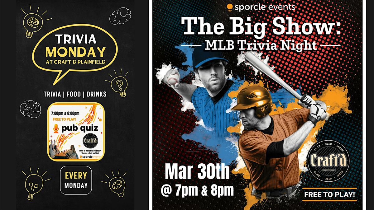 MLB Trivia Monday at Craft'd Plainfield. 7 & 8 PM on March 30th.About this Event