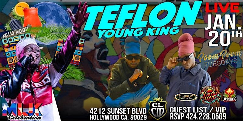 Get ready to vibe at the MLK Celebration featuring the incredible Jamaican reggae artist "TEFLON" Young King! This in-person event promises an unforgettable night of soulful rhythms, positive energy, and powerful messages. Don't miss out on this amazing live performance that honors peace, unity, and the legacy of MLK. Bring your friends and come celebrate with good music and great vibes!