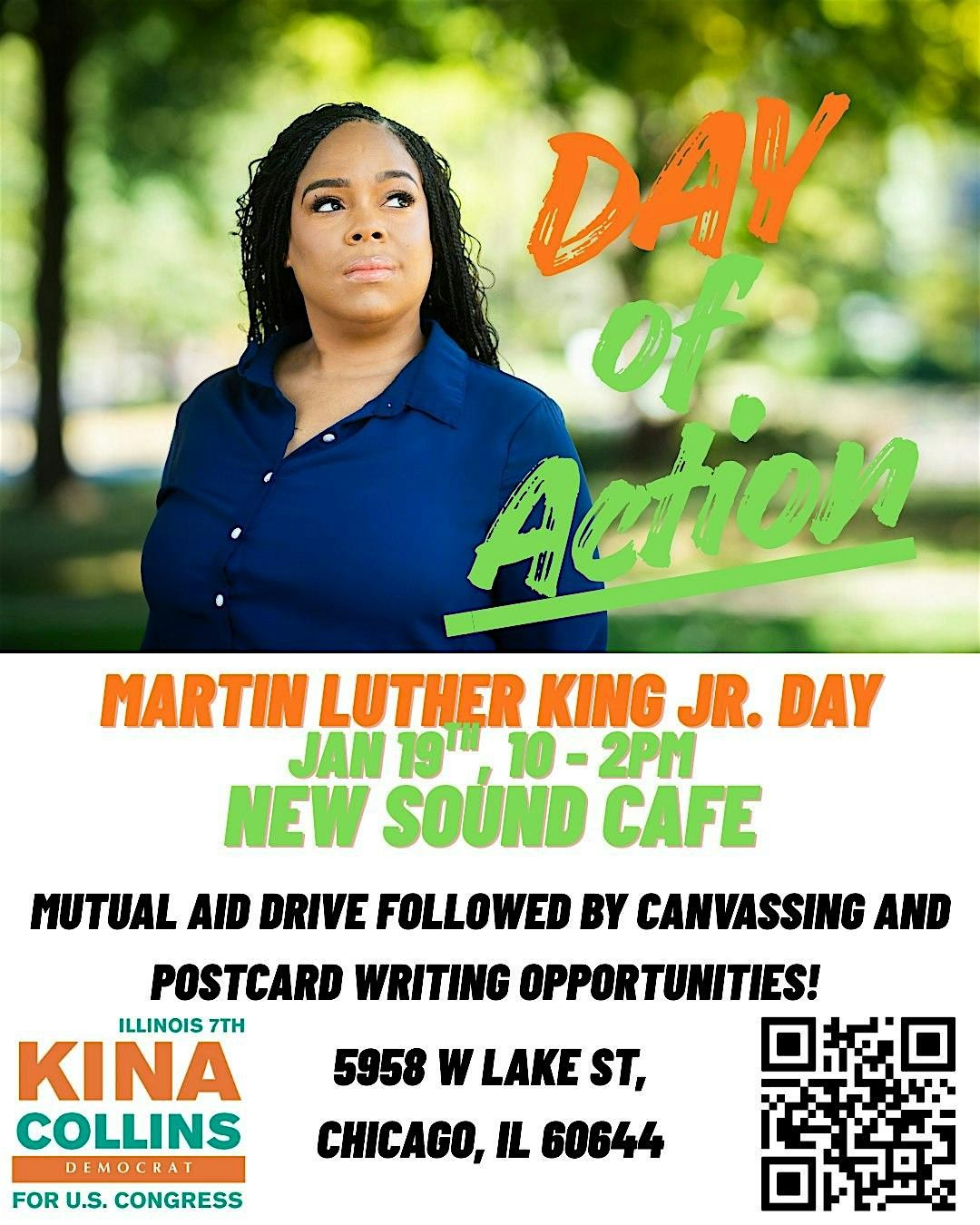 This MLK Day let's give back in honor of Dr. Martin Luther King Jr. The Kina Collins campaign for Congress is organizing a mutual aid drive at New Sound Cafe in the Austin neighborhood and is collecting items to be donated to local shelters and food banks. You can find a list of needed items below.