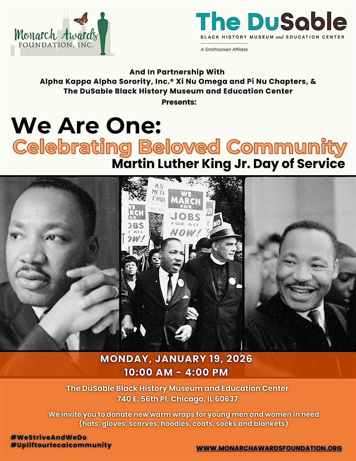 MLK Day of Service We Are One: Celebrating Beloved Community is all about coming together to honor Dr. Martin Luther King Jr.'s legacy. Join us in person for a day filled with community service, connection, and inspiration. Let’s make a positive impact side by side and celebrate unity and love!