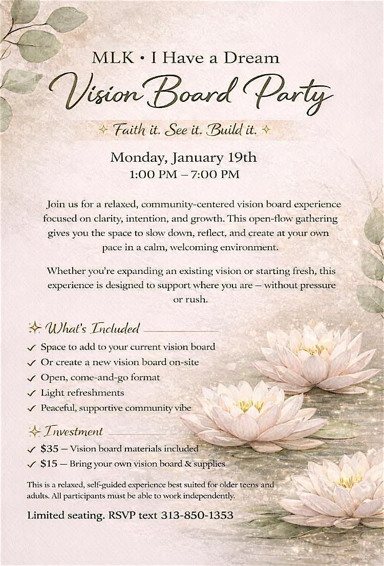 Join us for a relaxed, community-centered vision board experience inspired by clarity, intention, and growth