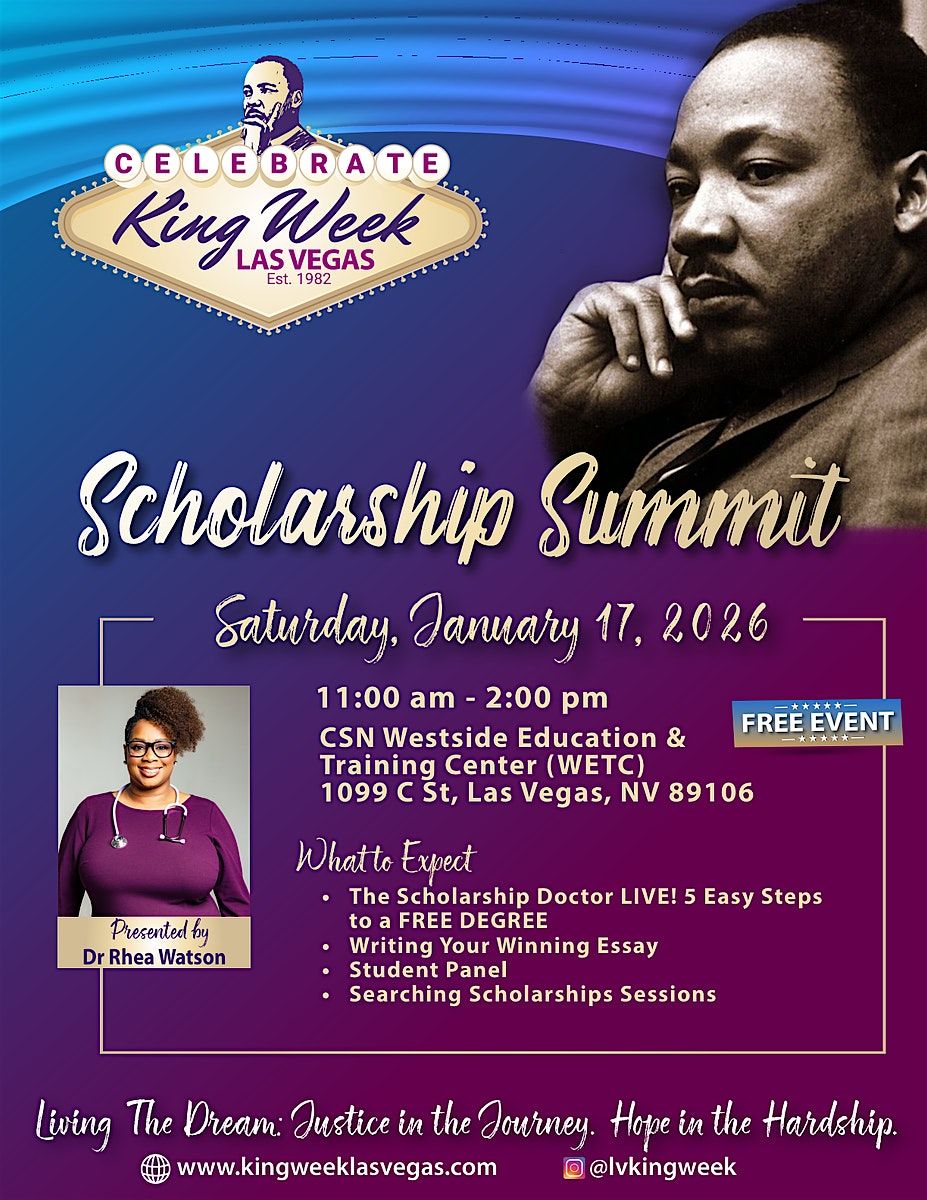 MLK Scholarship Summit! Learn how to go to college for FREE with Dr. Rhee!! is your chance to Learn How to go to College for FREE! If you have ever wanted to work with the Scholarship Doctor, join us for this exciting event!