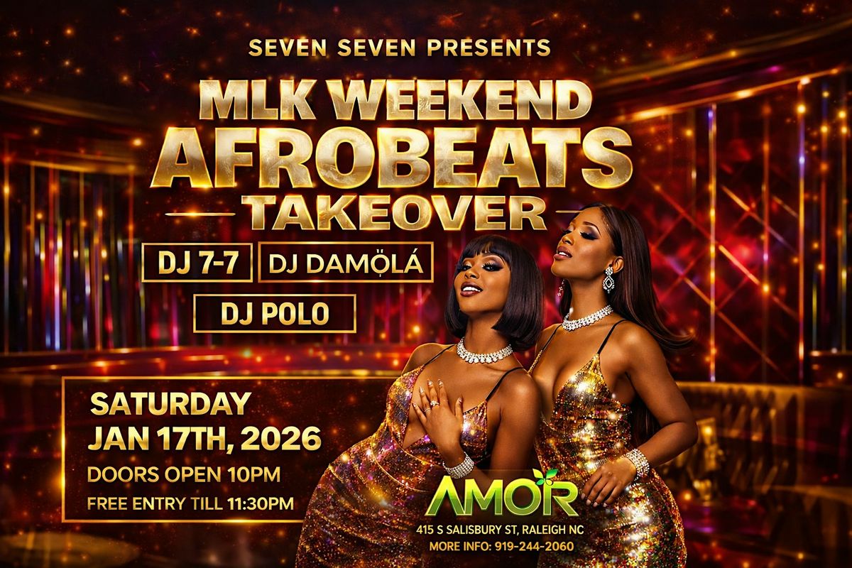 Get ready for an elite MLK Weekend night filled with nonstop Afrobeat vibes, energy, and culture at AMOR in Downtown Raleigh.
