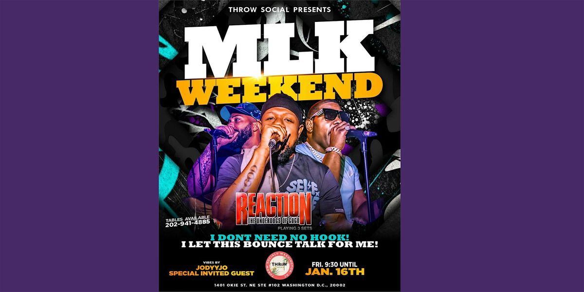 #MLKWeekend #ThrowSocial #GoGoLive #DCNights #ReactionLive #BounceMusic #DMVEvents