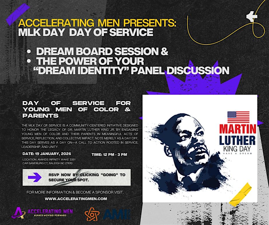 Join us in person for a meaningful day of community, growth, and connection! This event is all about bringing together young men of color and their parents to celebrate service and unity. Come ready to engage, learn, and make a positive impact. It's a great chance to meet awesome people and honor MLK’s legacy in a hands-on way. Don’t miss out on this empowering experience!