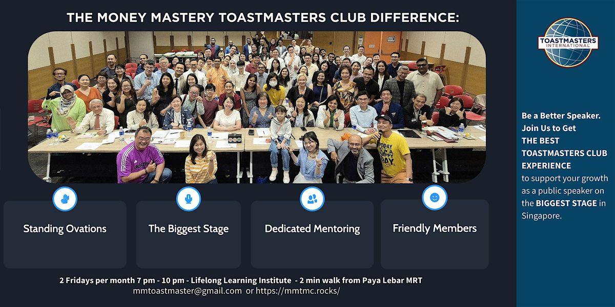 We are Money Mastery Toastmasters Club (MMTMC)—the most expensive and exclusive Toastmasters club in Singapore. We are not a "safe space" for beginners; we are an incubator for leaders.