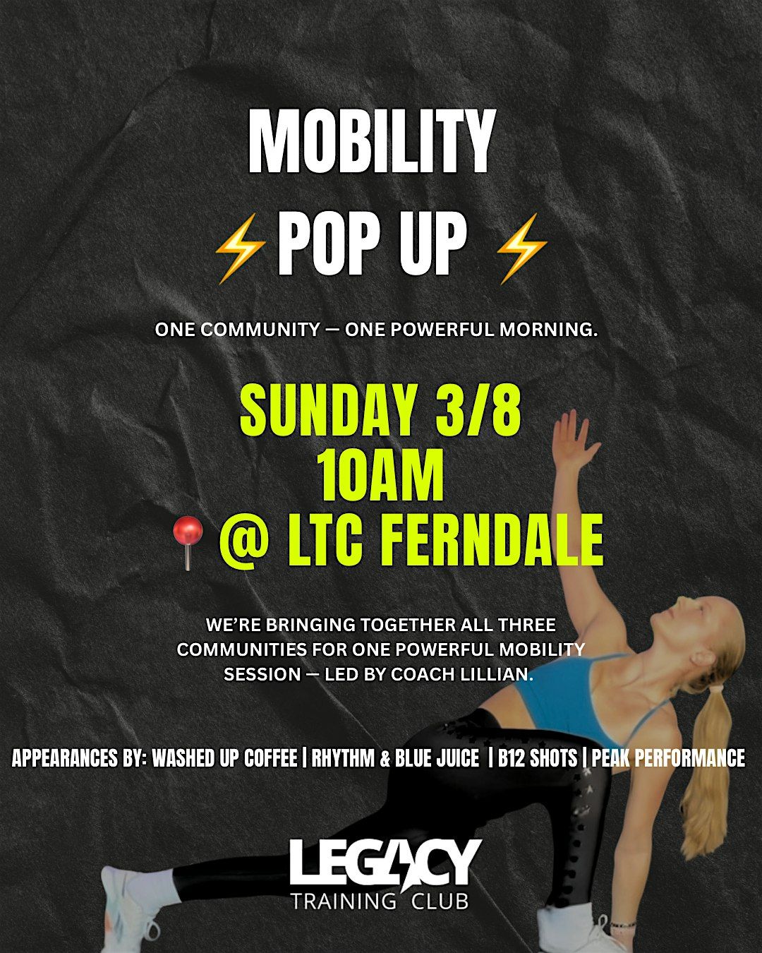 Join Coach Lilly for a full-body mobility session designed to help you move better, recover smarter, and perform at your peak. Whether you lift, run, train, or just want to feel better in your body — this session is for you.