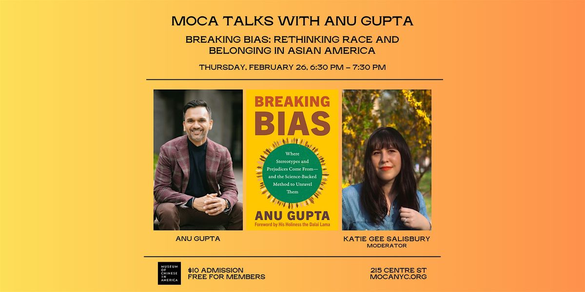 The Museum of Chinese in America (MOCA) invites you to a special conversation with author and lawyer Anu Gupta, moderated by author Katie Gee Salisbury, that explores the social and historical origins of racial thinking and the subtle ways bias is learned, reinforced, and carried through our bodies and institutions. MOCA’s special exhibition hapa.me serves as a point of departure for a broader discussion about what it means to live beyond single race categories, and how multiracial experiences complicate fixed ideas of identity, belonging, and visibility.