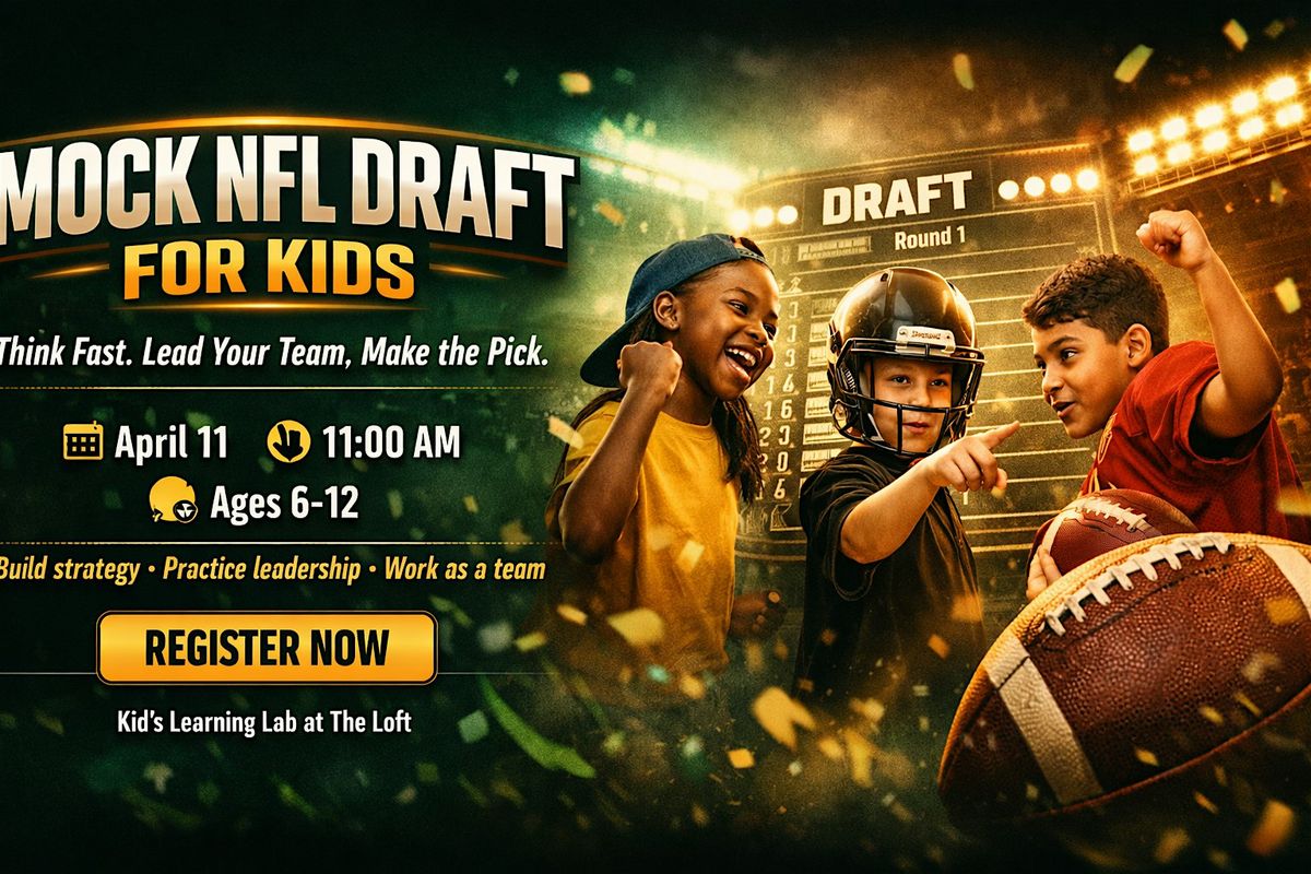 Kids take over draft day! Build teams, think fast, and lead like a pro in this fun, high-energy NFL-style experience at The Loft. Ages 6–12About this Event