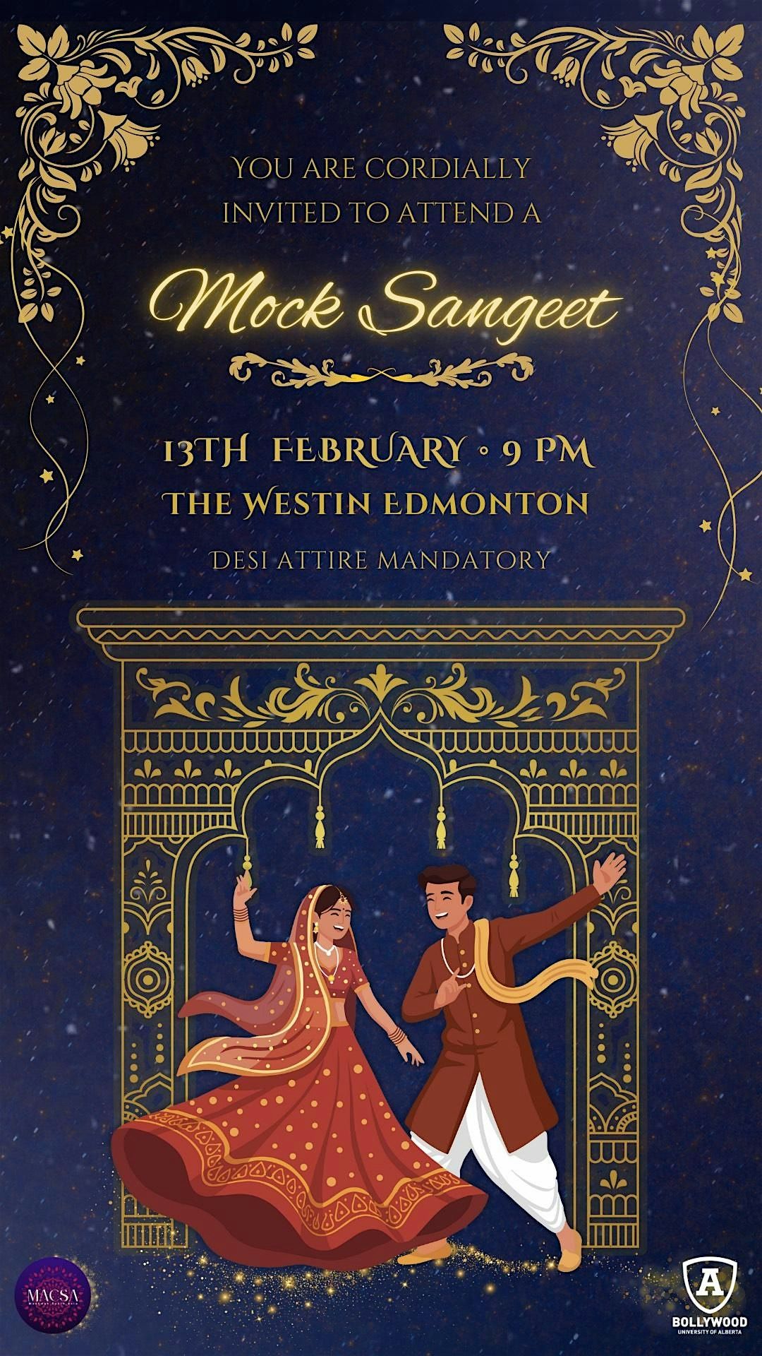 Get ready to step into a Mock Sangeet Night in your best and all out Indian Outfits and dance the night away. While there may not be a groom and a bride, be ready to pick sides as there will be a dance off between the "Groom's" side and the "Bride's" side.