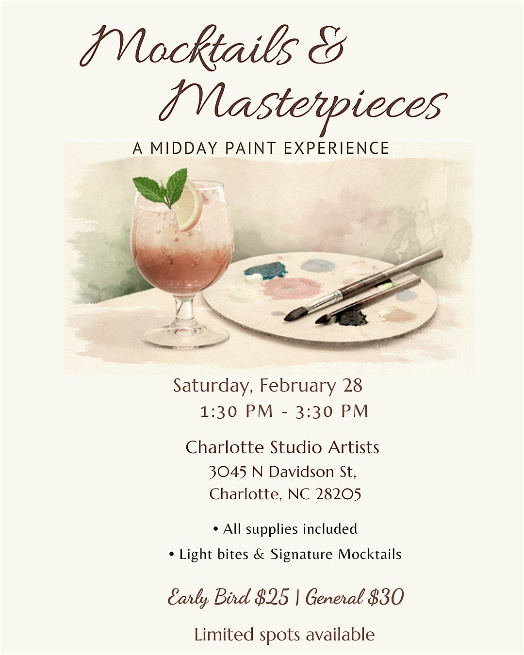 Join us for Mocktails & Masterpieces, a relaxed midday paint experience designed for beginners and creatives alike.