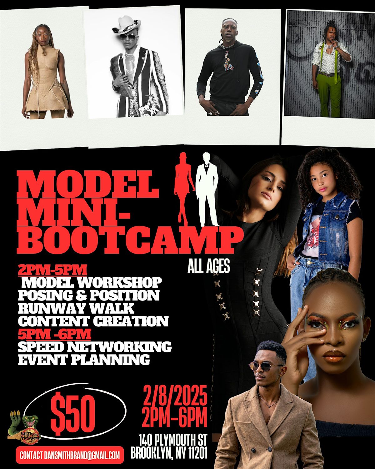 Our Mini Model Boot Camp Workshop is an interactive, confidence-building experience designed to introduce aspiring models to the fundamentals of the industry. Participants learn professional posing and positioning for photos, runway walk techniques, and how to move with confidence. The workshop also covers basic content creation, helping models understand how to present themselves on camera and build a strong image. Perfect for beginners, this boot camp focuses on skill development, self-expression, and having fun while learning the essentials of modeling.