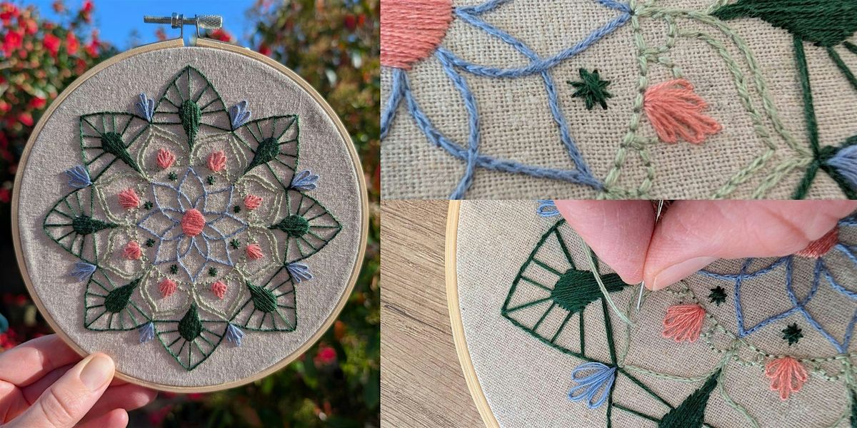During this workshop you'll learn five easy embroidery stitches to create this leaf mandala design. All materials will be supplied, and no previous experience is necessary as we'll talk you through each stage of the process from start to finish. Tea, coffee and cake will be available, and we'll be on hand throughout the session to help with any problems and answer any questions. A great way to relax and switch off from the stress of the week!