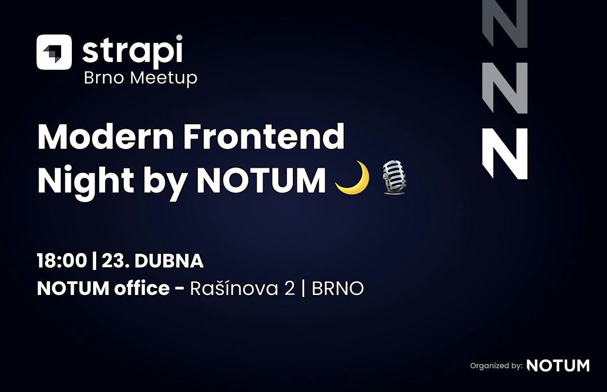 Další Notum meetup je tady! Přijďte s námi ve čtvrtek 23. 4. 2026 strávit večer a ponořit se do světa moderního frontendu s Next.js a Strapi.