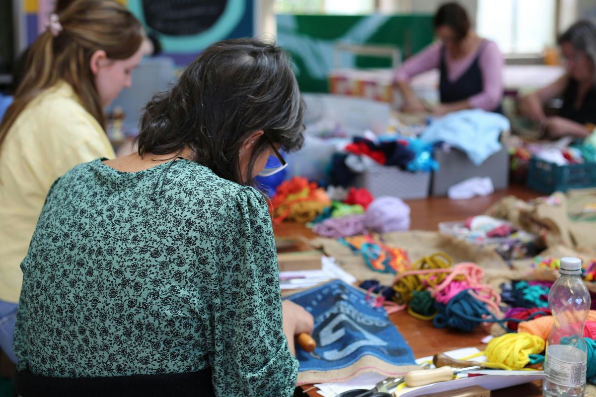 In this open ended session you'll learn two versatile rag rug techniques that can be used to create wall art, homewares, brooches and more! There will be a wide range of fabric scraps, recycled materials, colourful rope, buttons and other things to choose from to make your piece unique.