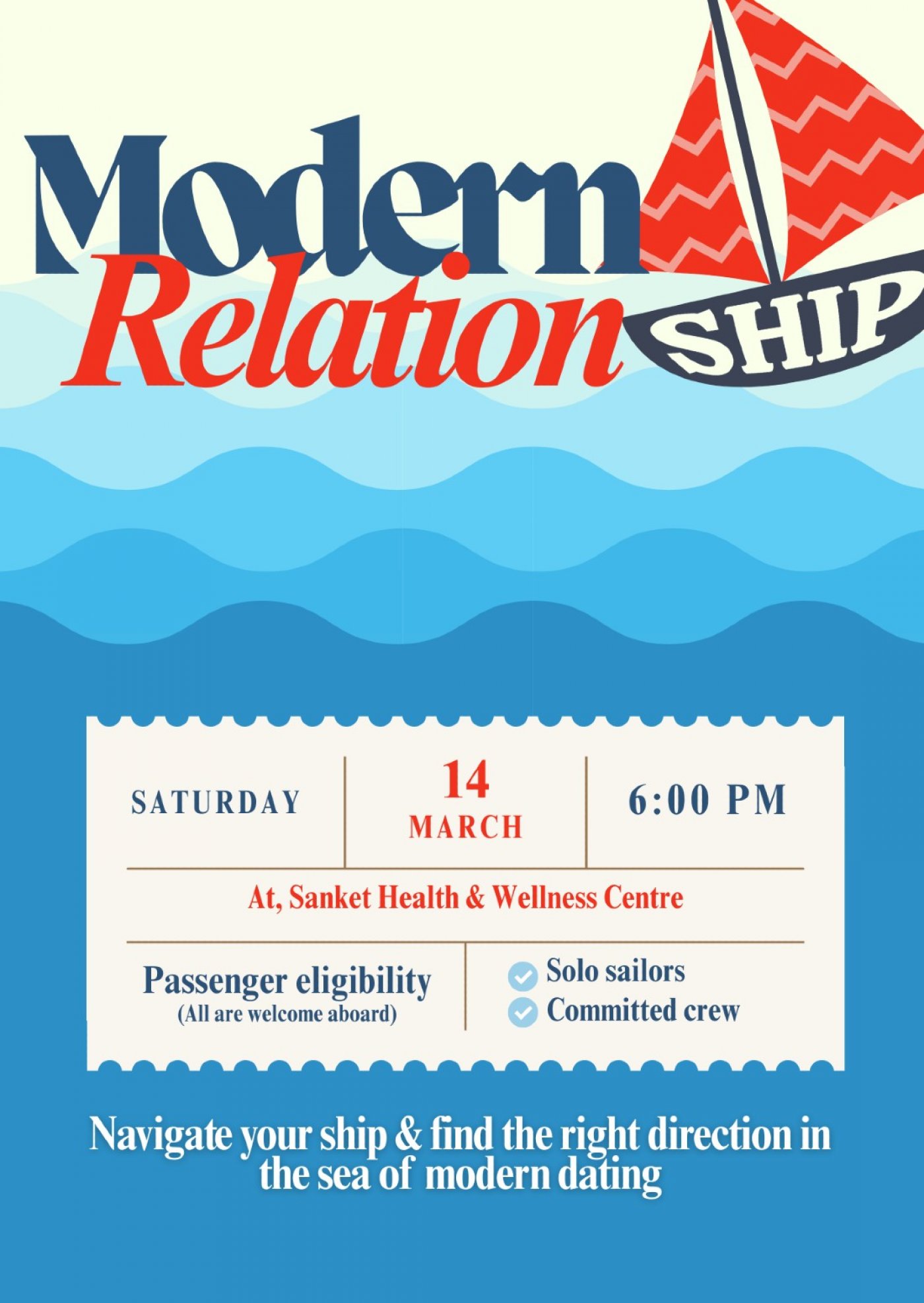 Unlock the gateway to a fulfilling journey towards authentic connections and emotional wellness. Secure your tickets on AllEvents today and set sail towards a brighter, more enriching future in the company of like-minded individuals. Don't miss this opportunity to chart a course towards love and self-discovery at "Modern Relationship: Navigate Your Ship."