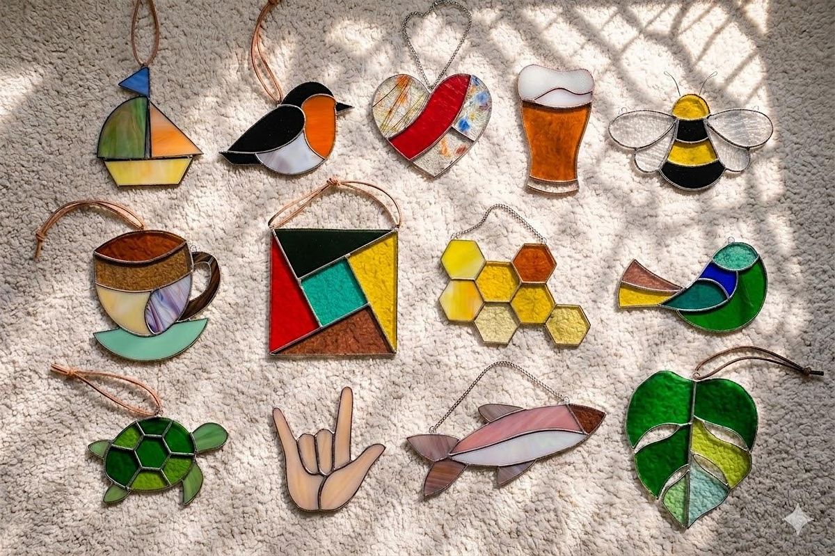 I’ve designed 13 unique templates specifically for this workshop—ranging from botanical leaves to geometric shapes. You’ll get to pick your favorite design and select your own colors from my collection of premium art glass to make a piece that truly reflects your style.