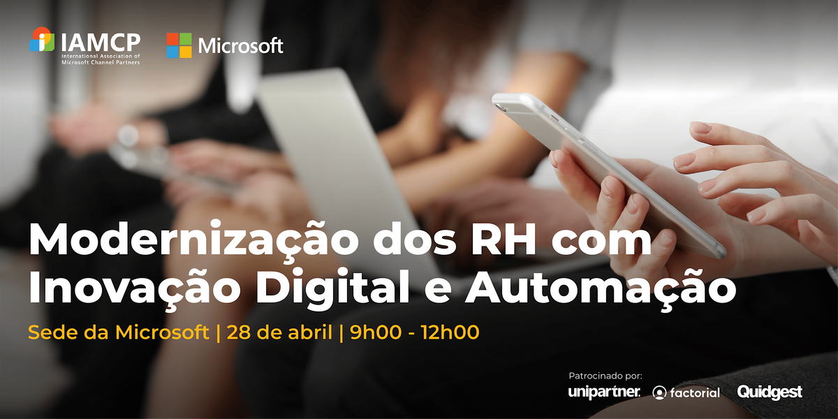 A IAMCP Portugal, em parceria com a Microsoft, a Unipartner, a Factorial e a Quidgest, apresenta uma sessão dedicada ao futuro dos Recursos Humanos — onde inovação digital, plataformas inteligentes e Inteligência Artificial se unem para transformar a forma como as organizações trabalham.
