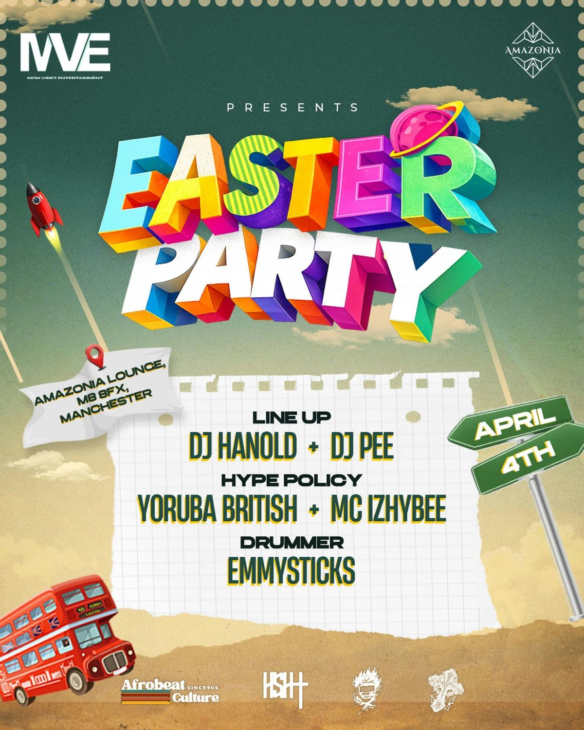 MOH VIBEZ ENTERTAINMENT X AMAZONIA LOUNGE Presents EASTER FIESTA PARTYCome party with the hottest DJ lineup in Manchester as we celebrate Easter Party 2026