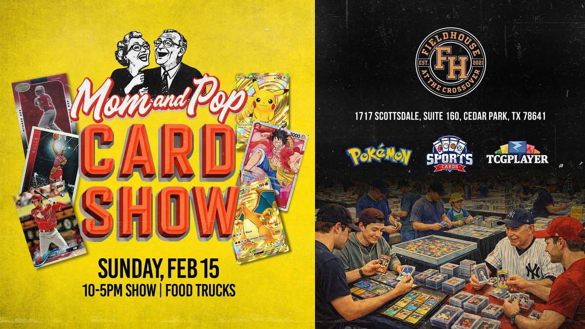Get ready for a fun, laid-back day at the Mom and Pop Card Show! This event is perfect for collectors and casual fans alike who love Sports cards, Pokémon, and other TCG. Whether you're hunting for rare finds or just want to hang out with fellow enthusiasts, this show’s got you covered. Bring your friends, browse unique cards, and enjoy a friendly atmosphere, food trucks, and drinks. Don’t miss it!