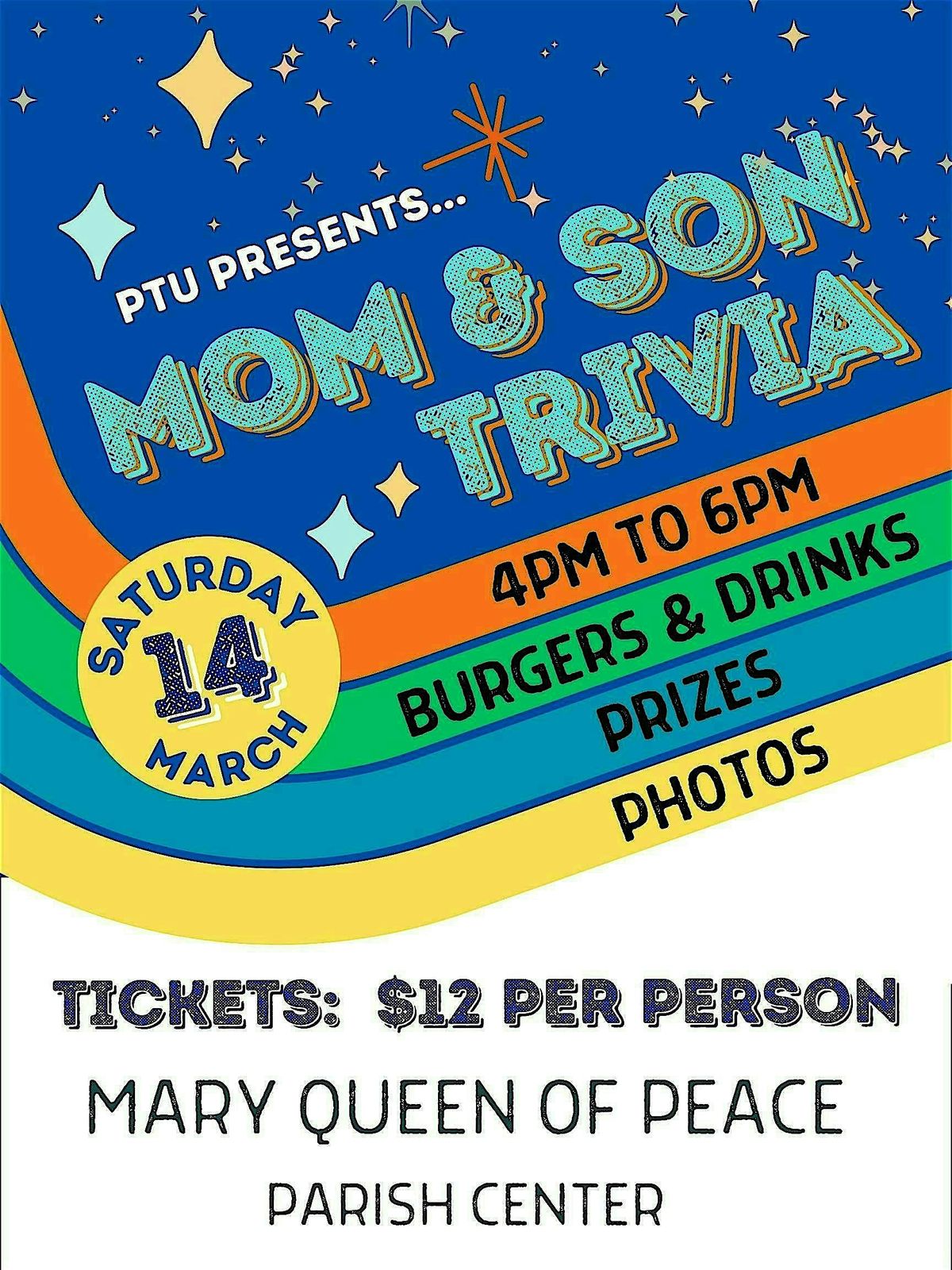 Mom & Son Event with trivia, burgers, drinks, prizes & fun