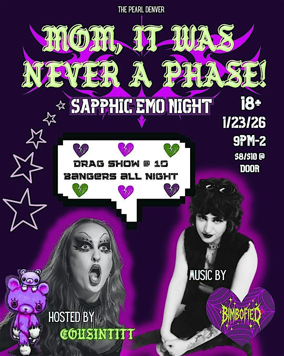 emo bangers played all night and a drag show of 10 local drag artists!About this Event