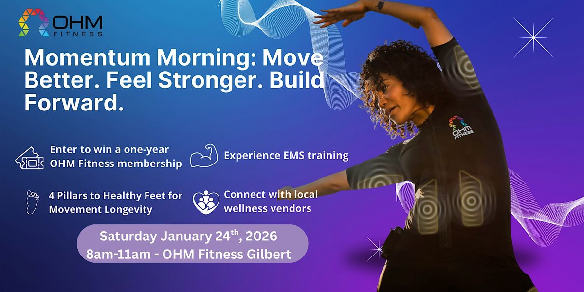 Kickstart your weekend with intention, movement, and community. Momentum Morning at OHM Fitness is a free wellness event designed to help you move better, feel stronger, and build sustainable health. Enjoy EMS classes, a movement longevity seminar, wellness vendors, and an exclusive in-studio giveaway—all in one high-energy morning.