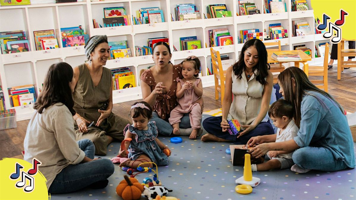 In this 45-minute session, families enjoy live music while little ones explore rhythm, melody, and movement through guided activities. Parents sing along in French and English, share simple joyful movement, and connect with their children in a supportive, social setting.