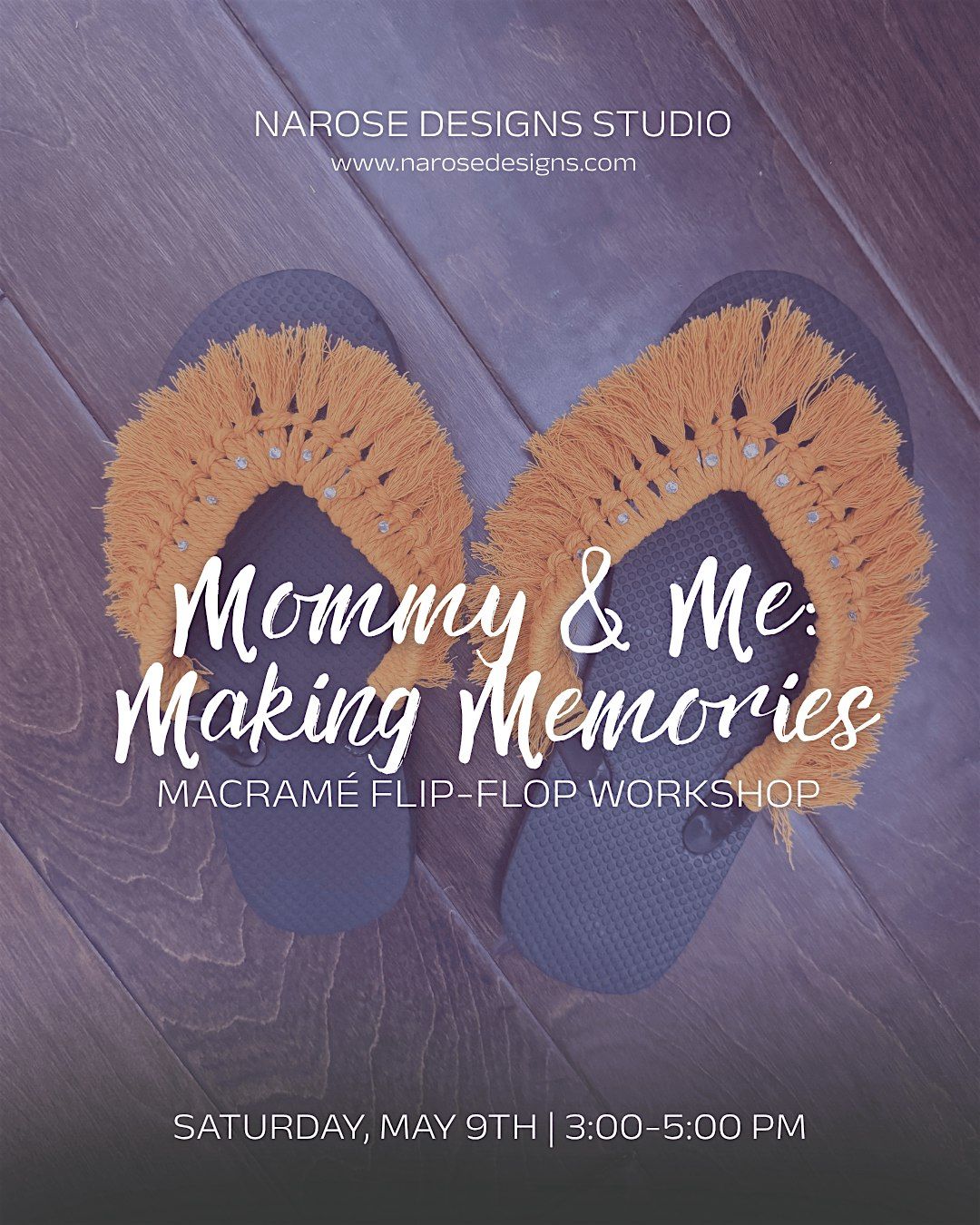 The Saturday before Mother's Day, bring your child to NaRose Designs Studio for Mommy & Me: Making Memories — a hands-on macramé flip-flop workshop where you create something together that you'll both actually wear.