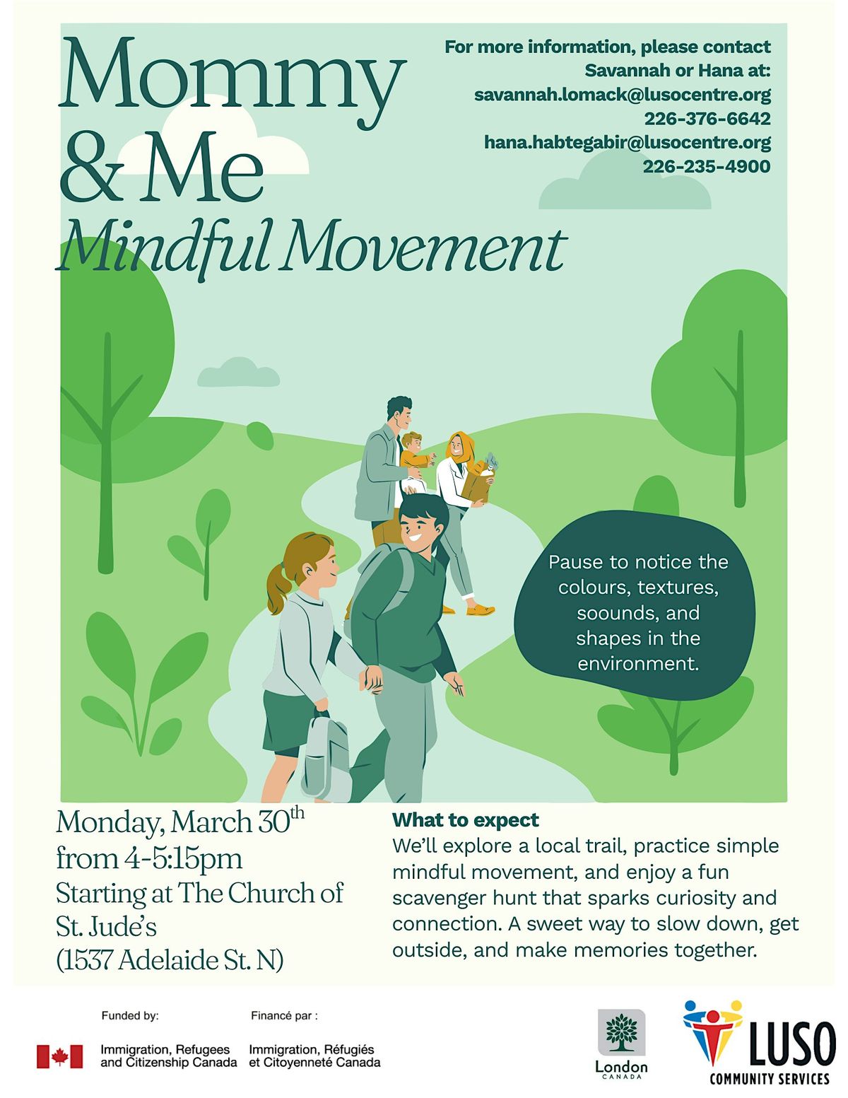 Mommy & Me Mindful Movement Join us for a peaceful nature walk with your little one. We’ll explore a local trail, practice simple mindful movement, and enjoy a fun scavenger hunt that sparks curiosity and connection. A sweet way to slow down, get outside, and make memories together.