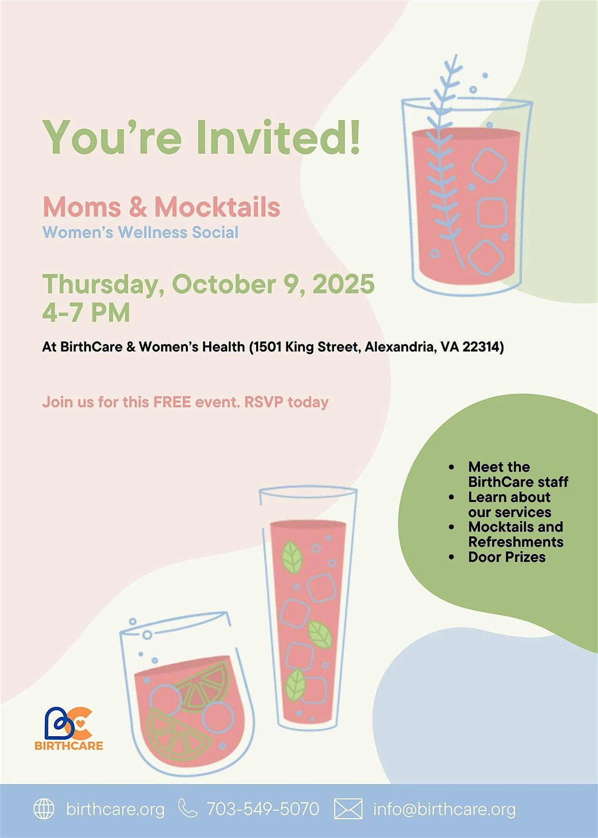 Stop by for Moms and Mocktails, where you can meet the BirthCare Staff, learn about our services, have mocktails and refreshments, and door.