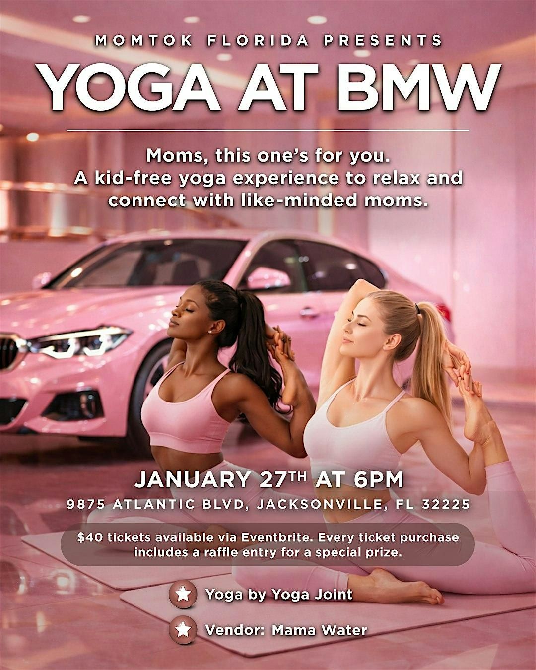 Join MOMTOK Florida for a special mom’s night out at BMW — an evening designed for connection, self-care, and community. Enjoy a guided yoga session led by Yoga Joint, relax in a beautiful showroom setting, and spend the evening connecting with like-minded mothers and creators in a warm, uplifting space.