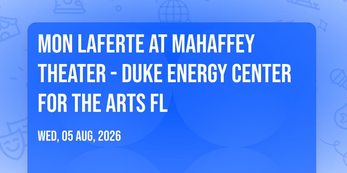 🎉 Prepare to be amazed at Mon Laferte at Mahaffey Theater - Duke Energy Center for the Arts FL, the most anticipated gathering of the season! 🌟 Set against the stunning backdrop of Mahaffey Theater - Duke Energy Center for the Arts FL in vibrant Saint Petersburg, FL, this event promises to redefine your expectations. 📅 Mark your calendars for August 5th, 2026 at 08:00 PM and get ready to immerse yourself in an atmosphere of wonder and excitement. ✨ From the moment you arrive, you'll be transported into a world where memories are made and stories come alive. They have crafted an experience that perfectly harmonizes entertainment, innovation, and community spirit. 🌈 Join us as we create moments that will be discussed for years!