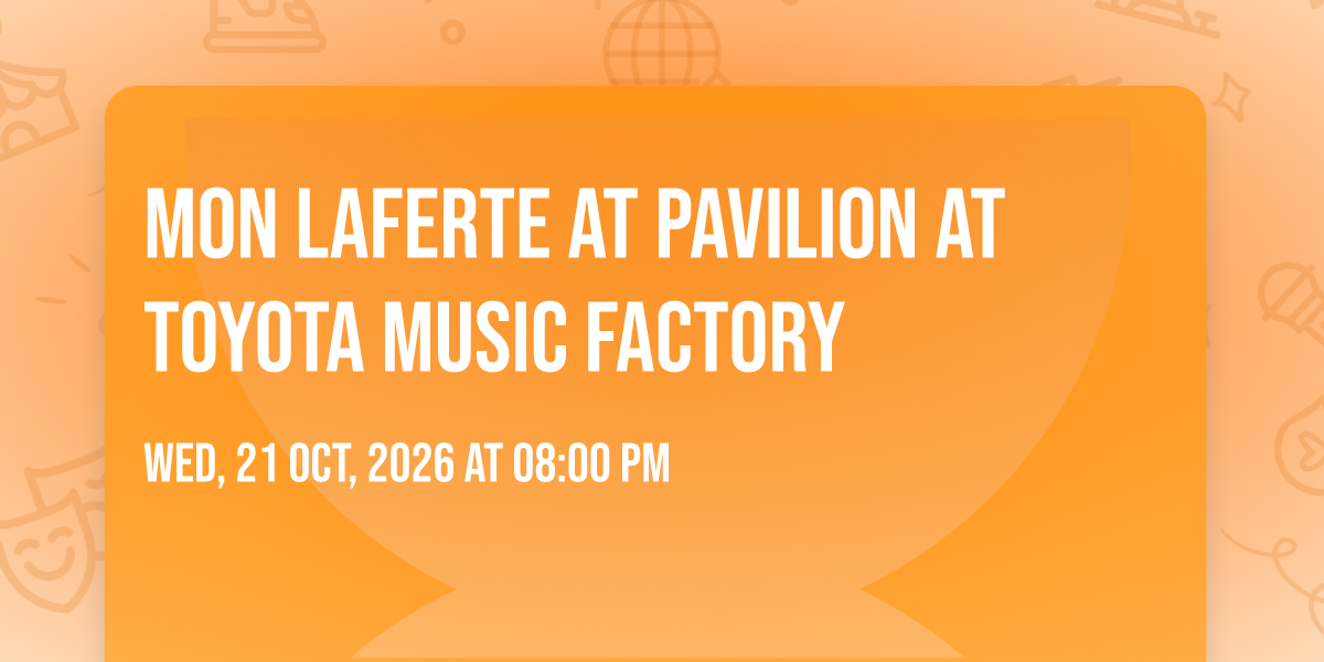 ✨ Experience the magic of Mon Laferte at Pavilion at Toyota Music Factory, where moments become memories that last a lifetime! 🏛️ The iconic Pavilion at Toyota Music Factory in Irving, TX sets the perfect stage for an unforgettable celebration on October 21st, 2026 at 08:00 PM. 🌟 It's been a curated experience that brings together the best of entertainment and innovation, creating an atmosphere of wonder and excitement. From the moment you arrive, you'll be immersed in a world where the ordinary transforms into the extraordinary. 🎊 Book early to secure your place in what promises to be an event that will be talked about for years to come!