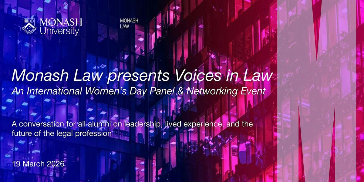 Monash Law invites our alumni, students, staff, and supporters to join us for our International Women’s Day Panel and Networking Evening, the Faculty’s first engagement event of 2026.