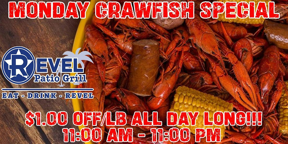 Forget the Monday blues—we’re turning up the heat at The Revel Patio Grill! Whether you’re a peeling pro or a first-time pincher, our Monday Crawfish Special is the only way to kick off your week.