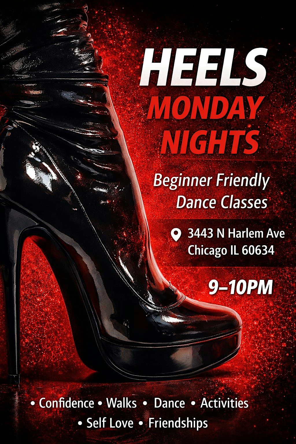 Ready to step up your dance game? Join our Heels Dance Class Monday night for a fun, energetic session that’ll boost your confidence and rhythm. This is an in-person class, perfect for anyone looking to learn some fabulous moves while having a blast!