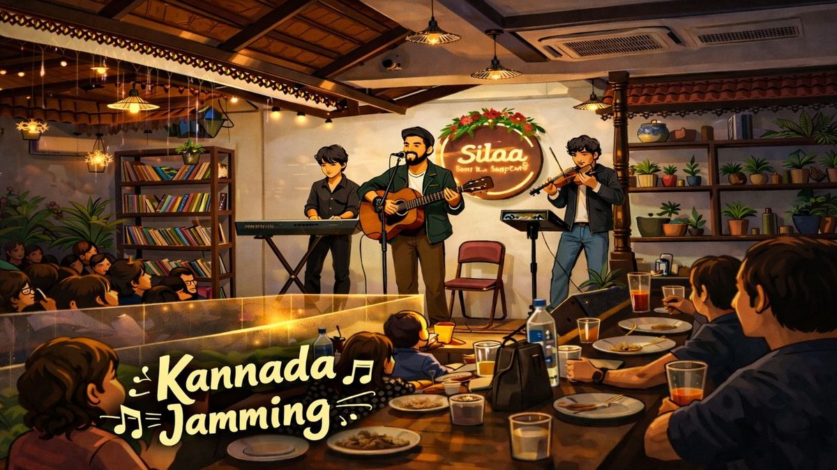 🎶 Relive the Golden Era of Kannada Music! 🎶Step into a musical, brings back the soulful sounds of the 70s, 80s, and 90s! Join us for a mesmerizing evening filled with timeless Kannada old songs that defined an era-songs that still live in our hearts and memories. , this concert will pay tribute to legendary composers.The session includes one hour of jamming in which first half an hour will be marathon of songs followed by a request segment and vibing with fast numbers. The ticket fee is only for the entry, food is not mandatory. However we serve pure vegetarian food ( coastal Goa`n, continental, beverages and desserts ) À la carte which is billable.
