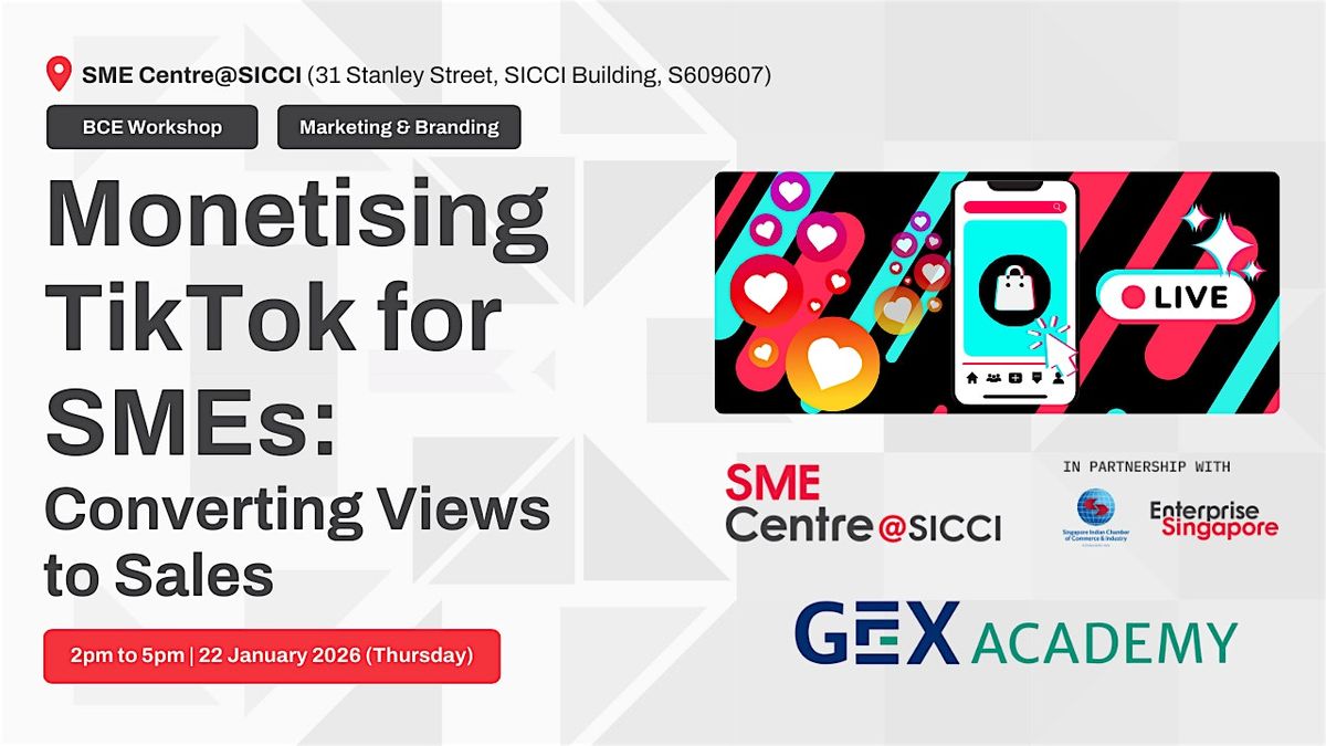 Discover how SMEs are using TikTok to drive real revenue—not just views. In this focused 3-hour workshop, our partner, Mr Lucas Low from GEX Academy will break down the psychology behind content that triggers buying decisions, how livestreaming dramatically boosts conversion rates, and how any business can build a simple TikTok sales funnel that consistently generates leads and sales. Participants will also learn from real SME case studies and receive a practical 5-day revenue activation roadmap they can apply immediately.