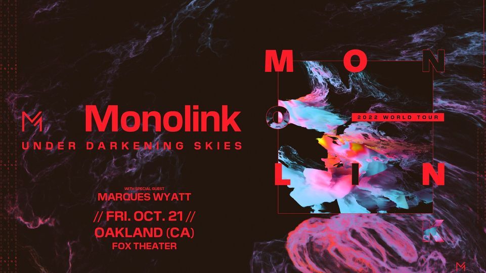 Monolink is bringing the Under Darkening Skies Tour to the historic Fox Theater in Oakland on October 21st, 2022! Marques Wyatt will open the show. The Another Planet Entertainment presale begins Wednesday, June 29th at 12pm (password = joodooboo) via TheFoxOakland.com.