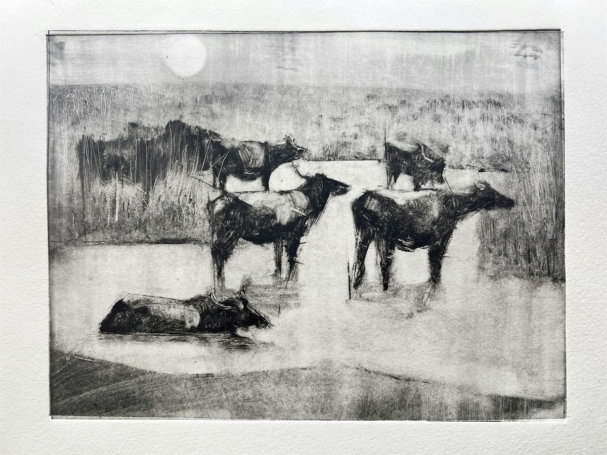 Banner image 1: Lena Chermoshniuk, "Water Buffalos", 6" x 8" (image size), 2025