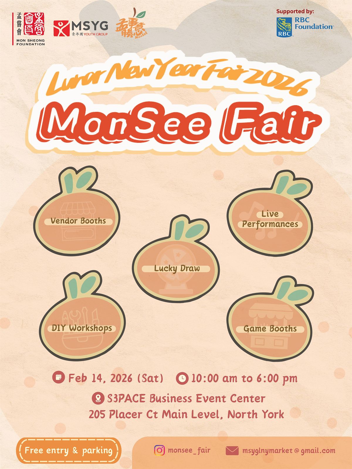 Hosted by the Mon Sheong Youth Group, the MonSee FairLunar New Year Market is almost here! We invite you to join us for welcoming the Lunar New Year with festive vibes together.