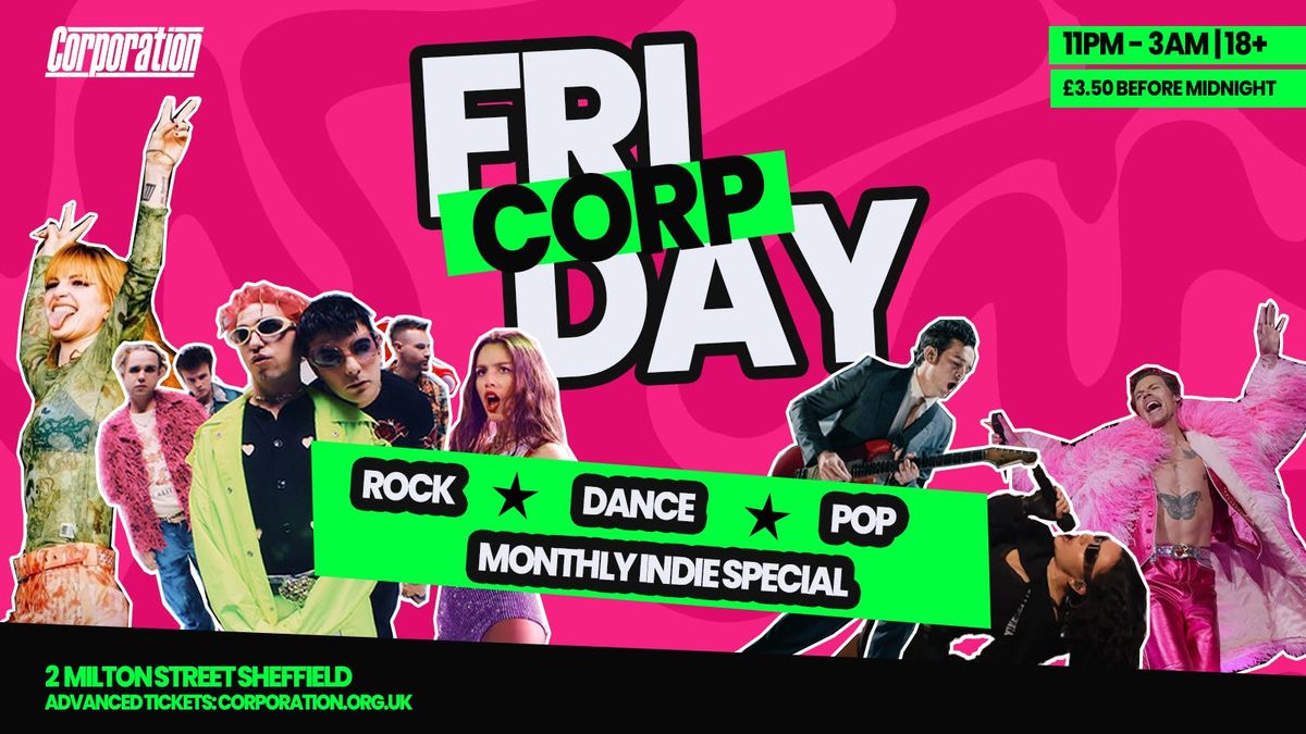 Corp Friday has had a glow-up – and it’s all for you. We’ve taken everything you love about a big night out and turned the volume up. This isn’t just a club night, it’s a playlist you can walk through. From crowd-surfing chaos in Drop (Sheffield’s longest-running rock and metal night) to dancing like nobody’s watching in our pop room, this is your space to go all out.